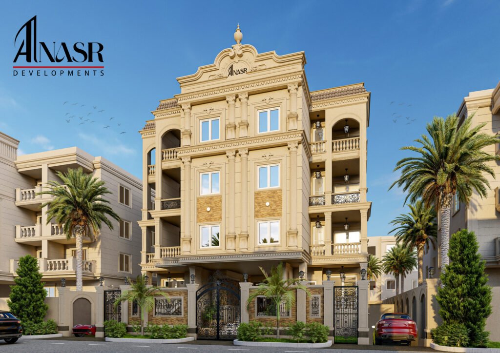 Beit Al-Watan, Fifth District, in front of Mountain View and Palm Hills, on the road separating Third and Fifth Districts. A modern residential project combining contemporary design with a strategic location.