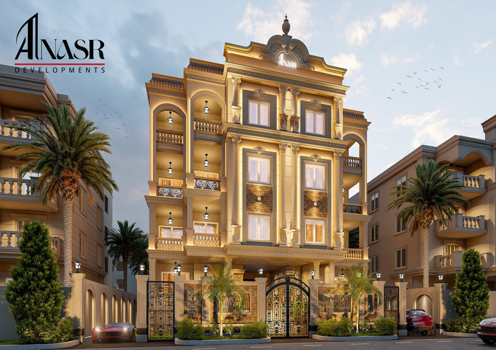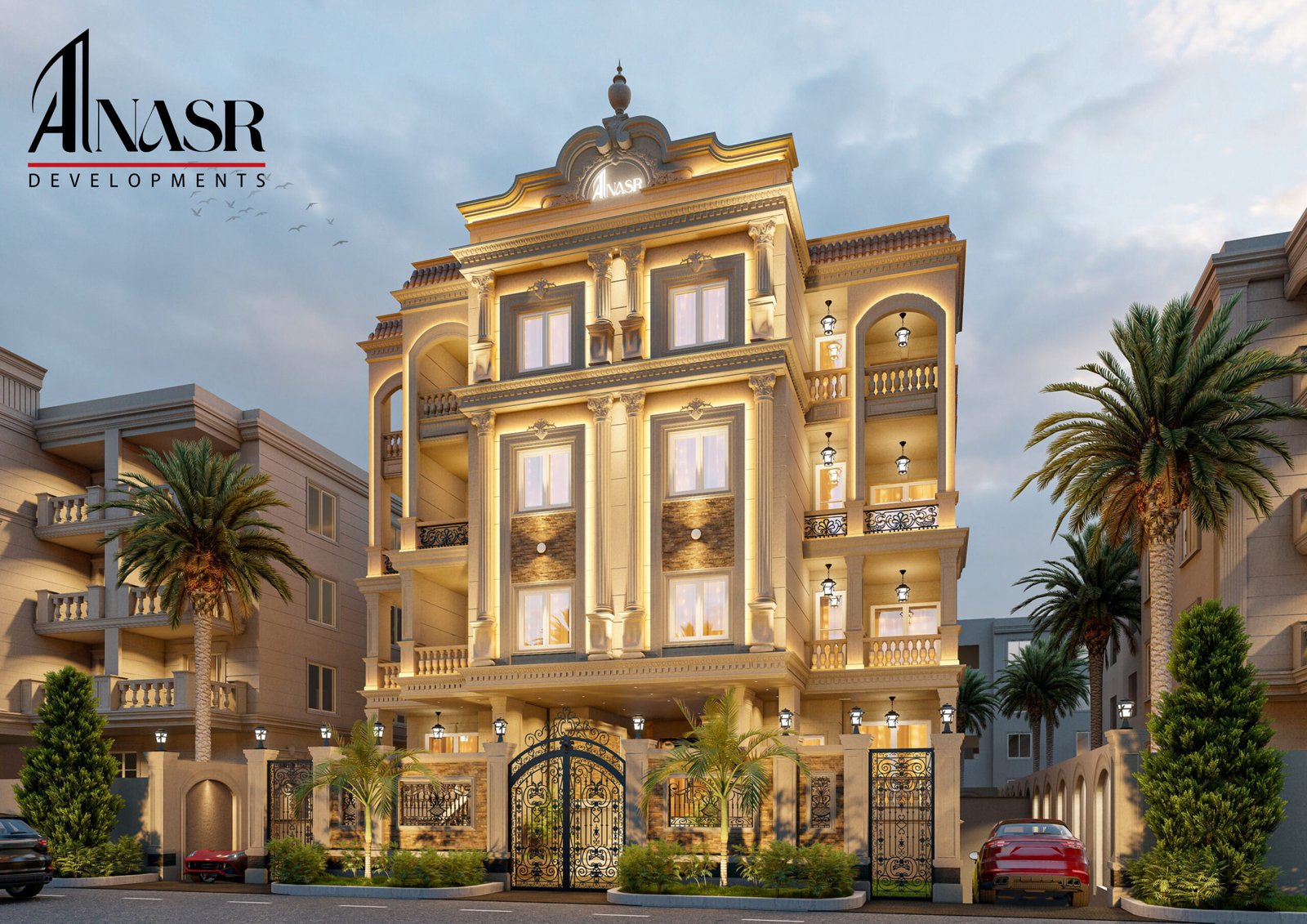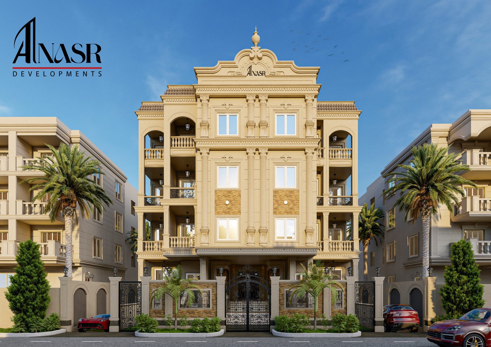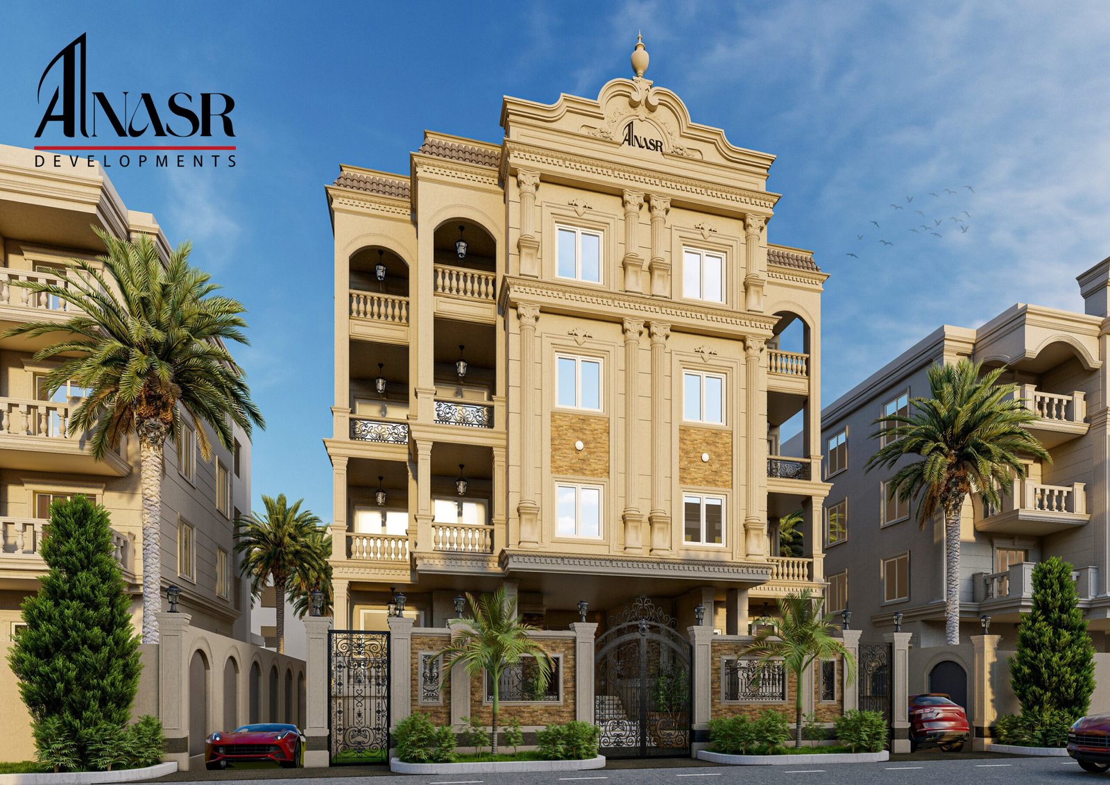 Beit Al-Watan, Second District, near Al Ahly Club, Police Club, and North 90th Street. Modern residential project combining contemporary design with a strategic location.